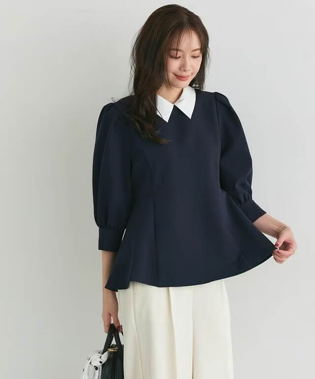 具体的には、ブラウスにフレアスカートやテーパードパンツを合わせたセパレートのコーディネートがおすすめ。