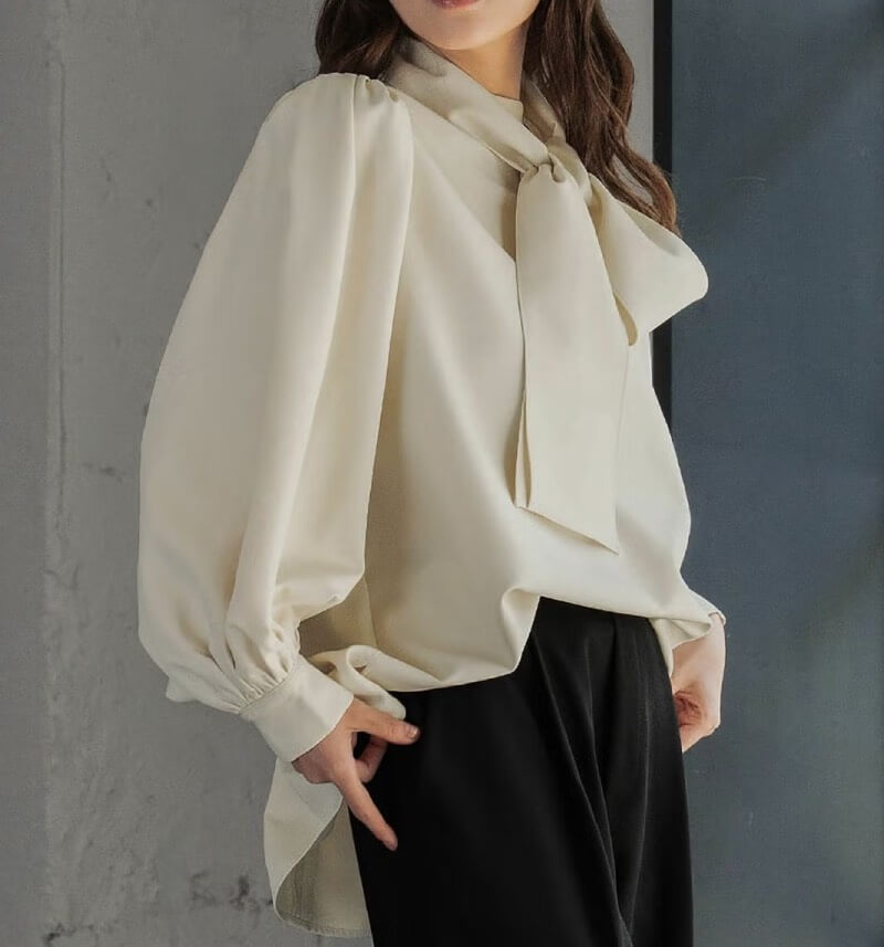 一方で、華奢な体型の方は、フリルやギャザーがあしらわれたブラウスでボリュームを足すと、華やかさが増す。