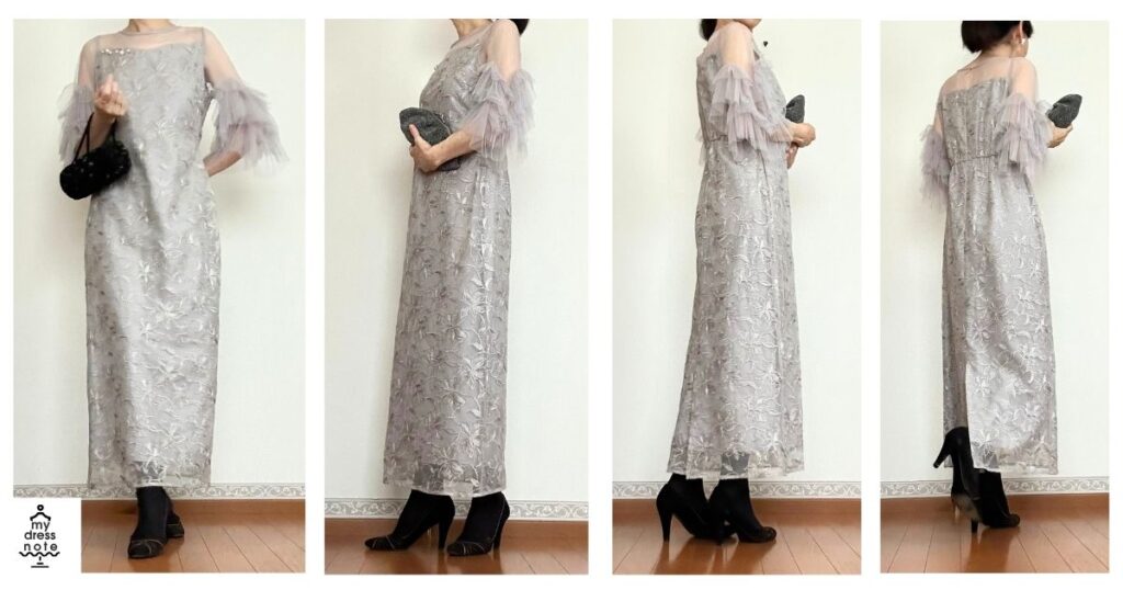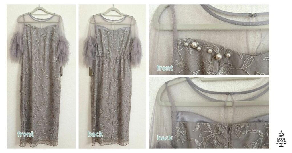 繊細な刺繍やチュール使いが特徴のドレスは、体型カバーしつつデコルテを美しく見せるデザインで着心地も抜群でした。